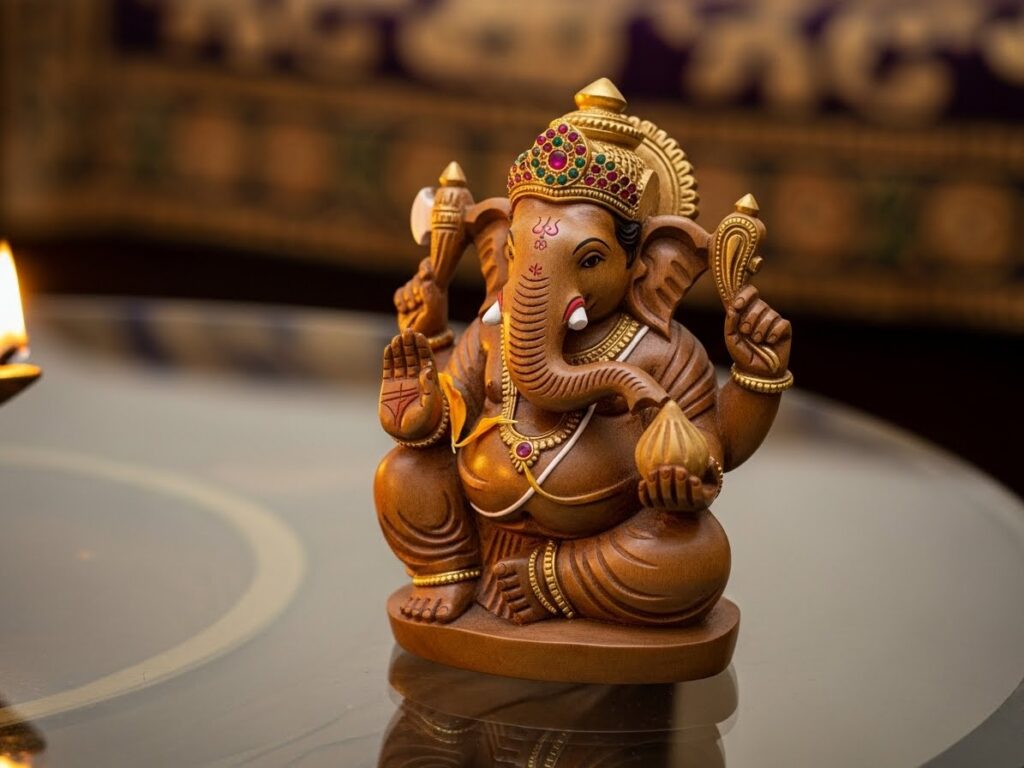 象の頭に人間の体をしており、富と繁栄、知恵と学問、成功を司る神様です。